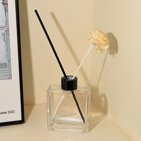 20 x Clear Rectangular Glass Diffuser Bottles with Black Caps 100ml