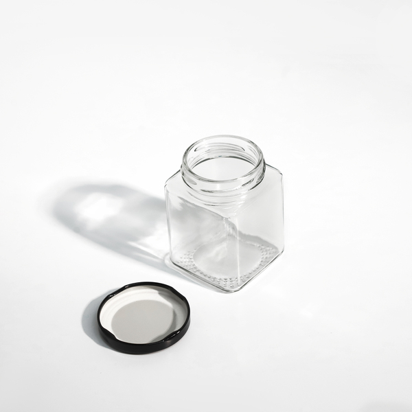 - Black colour screw-on metal lid