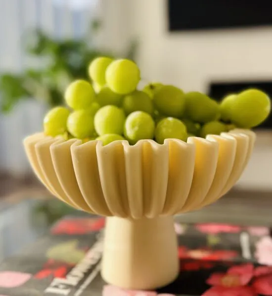 Elevate your space with the Aurora Decorative Bowl, a beautifully crafted statement piece that blends contemporary elegance with timeless charm. Designed with a unique pleated texture and an elegant pedestal base, this bowl exudes sophistication, making it perfect for wedding décor and home decoration alike. Whether displayed as a centerpiece at a wedding, on a coffee table, or as an accent in an entryway, this exquisite piece enhances any setting. Made from a high-quality blend of polyresin and marble powder, it offers a refined, stone-like texture while remaining lightweight and durable.