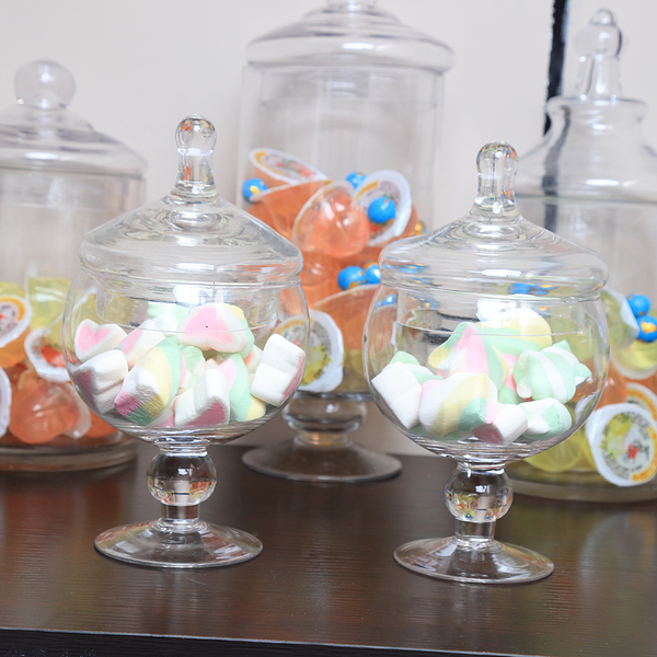 Made from clear glass, the jars will blend in with any colour décor theme you choose. They can be filled with treats, candies or trinkets that match or contrast with your unique colours.
