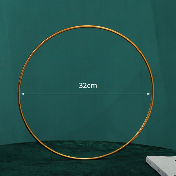 The hoops are made of metal and finished in a lavish gold colour. They are supplied in a bulk pack of 10 hoops. The diameter of the hoop is 32cm.