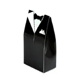 The Groom Box comes in black and resembles a smart suit that a groom would wear, complete with a black bowtie and handkerchief in the chest pocket. The Bride Box is pure white and has a glorious feminine bow tied at the front.