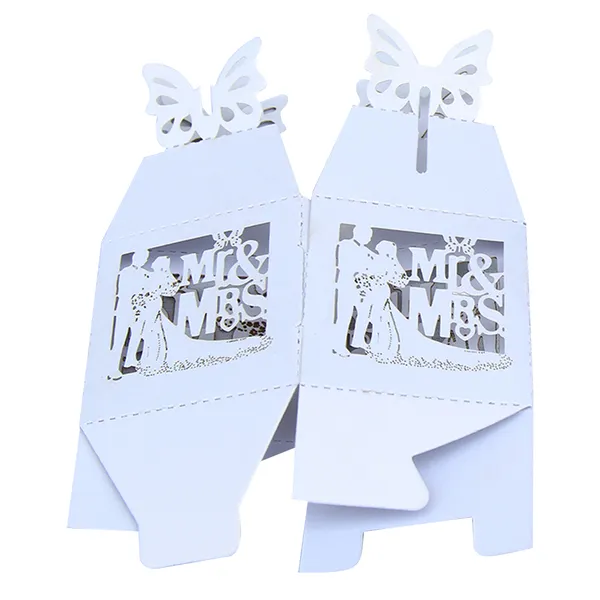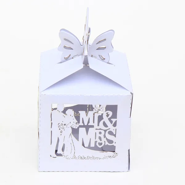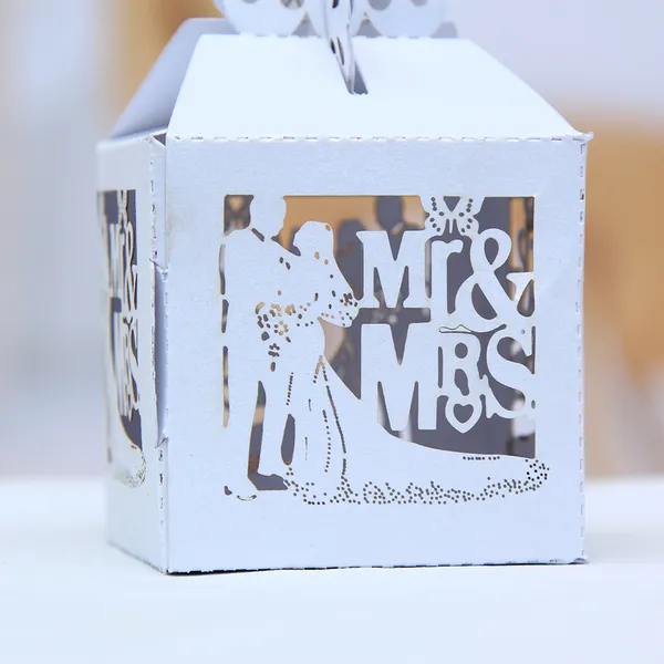 100 x White Mr&Mrs Laser Cut Wedding Favour Boxes Bomboniere Candy Bags