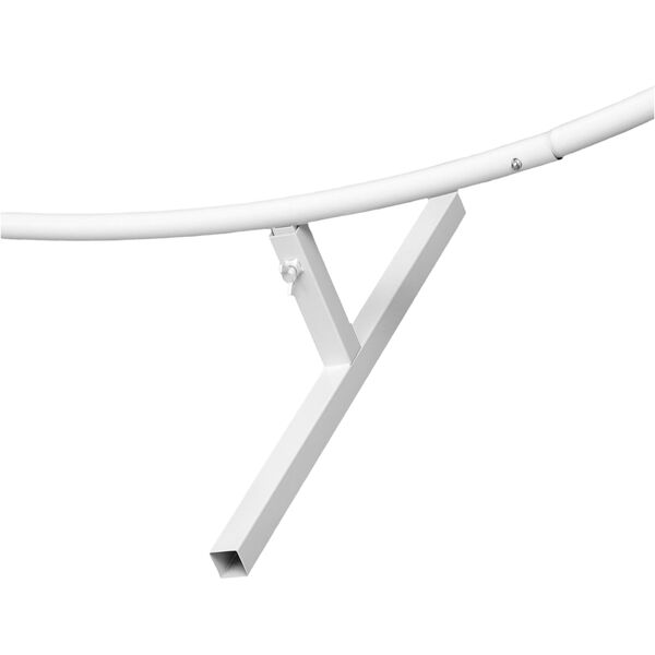 The arch is made of metal and finished in a clean white colour. It features a classic circular shape with cross-tiers adding to the overall strength. It is easy to assemble by clipping the separate sections together to form the circle. On each end is a study base foot allowing you to stand the arch exactly where you need it. The arch is ideal for both indoor and outdoor occasions.