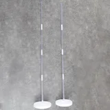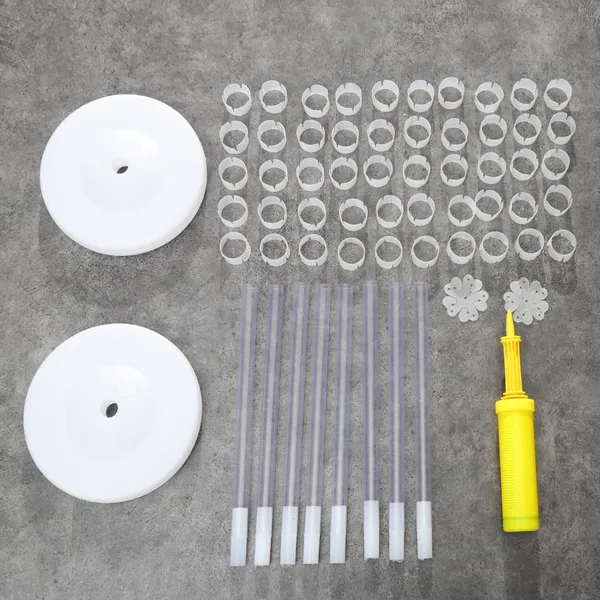 Our new stands will do the job for you. They are made of plastic and stand 1.26m tall. The set offers 2 stands, so you can create a lovely display in a garden or indoor setting. Simply assemble and attach your balloons to the stands using the supplied clips. The stands have a sturdy base and will not topple over. They are ideal for both indoors and outdoors.