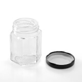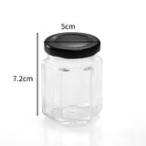 40 x 85ml Hexagon Shape Glass Jars Black Lid