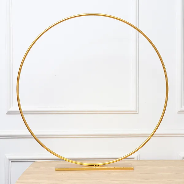 The hoop is made of metal and finished in a lavish gold colour. It is perfect for any upmarket occasion where you want to add a touch of opulence to your décor theme. The hoop is 80cm in diameter and comes on a stand. The stand is attached to the hoop and does not require any assembly when it arrives. The sturdy stand is sized at 40cm x 12cm and ensures that the hoop will never topple over.