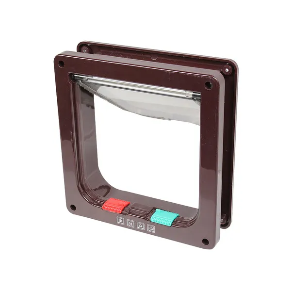 Brown 4 Way Lockable Pet Cat Dog Puppy Flap Door Medium 23.5x25cm
