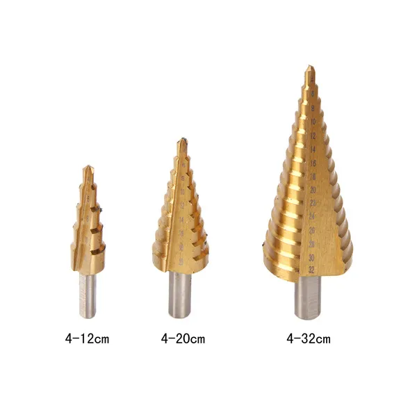 3 PC Set HSS Step Cone Drill Bits Titanium Coated
