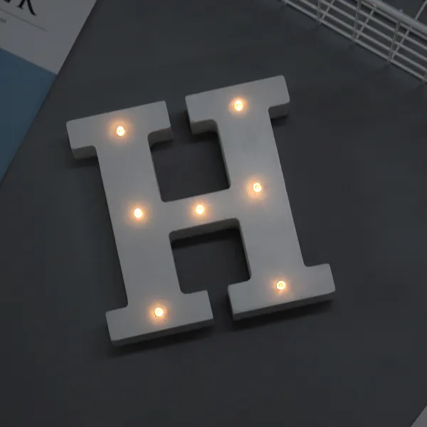 'H' White Alphabet Wooden Letter LED Sign Light