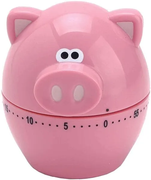 This fun pig shaped mechanical timer is perfect for your timing needs both inside and outside of the kitchen * Great for cooking with the kids, or simply timing kids' brushing or time outs * Counts down from up to 60 minutes * To set, wind all the way clockwise to 60 minutes and then turn counter clockwise to set the desired time * Mechanical style is economic- timer does not require batteries