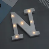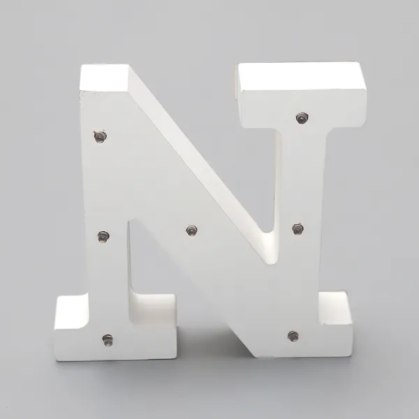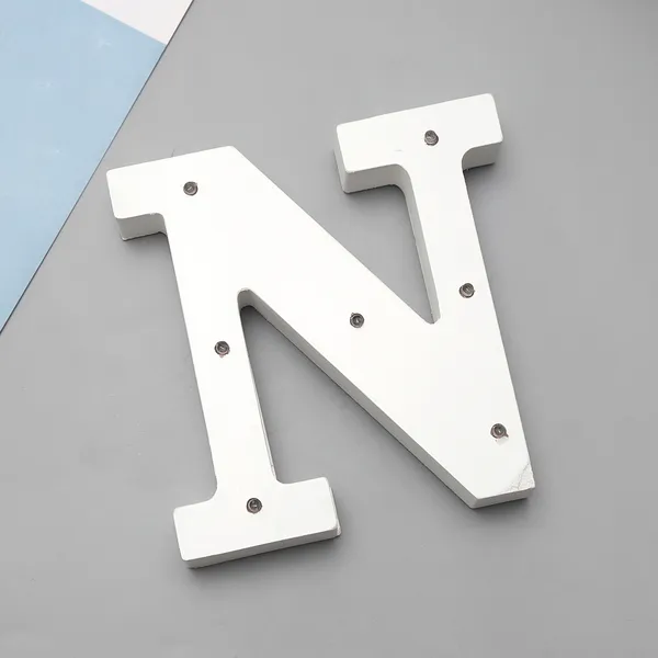'N' White Alphabet Wooden Letter LED Sign Light