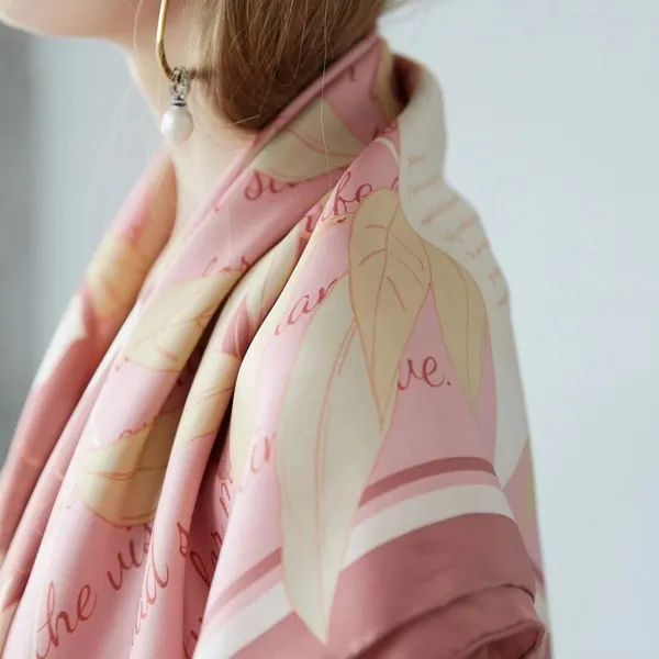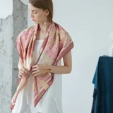 The scarf is made of 100% Mulberry silk. Twill fabrics technically have a front and a backside, it is usually more durable and more attractive. The scarf has a sophisticated hand-rolled three-dimensional trim around the edges. Traditional screen printing offers a br...