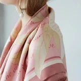 Square Silk Twill Scarf with Parrots and Love Letter in Pink 110
